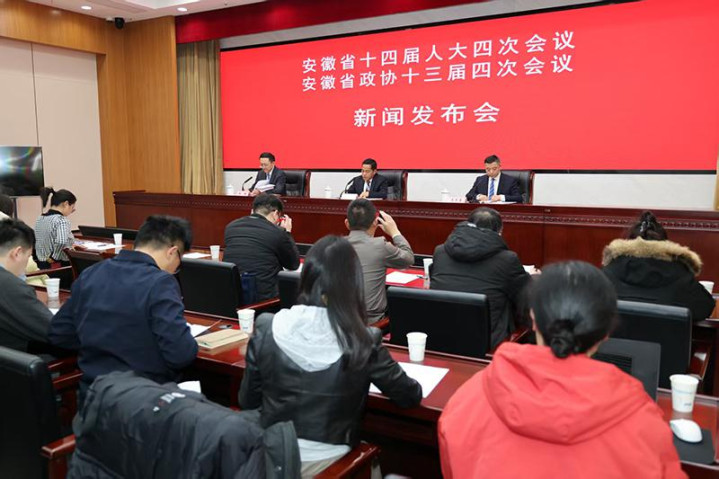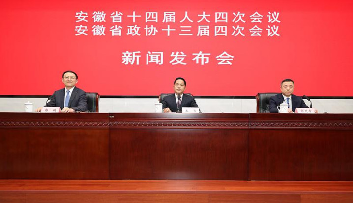 人民网合肥2月2日电(记者韩震震、徐文兵)2月2日下午,安徽省举办省十四届人大四次会议和省政协十三届四次会议新闻发布会。安徽省人大常委会研究室主任、新闻发言人王飞,安徽省政协研究室主任、新闻发言人马艾青出席新闻发布会,并回答记者提问。安徽省委宣传部副部长、省政府新闻办主任,省政府新闻发言人郭鹏主持新闻发布会。